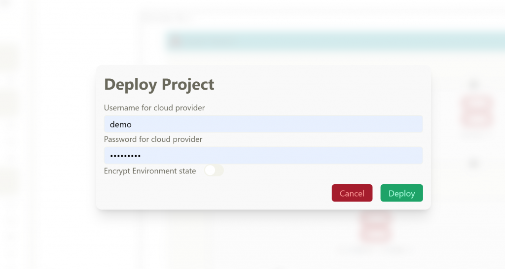 - Deploy your cloud infrastructure with a press of a button to chosen cloud provider